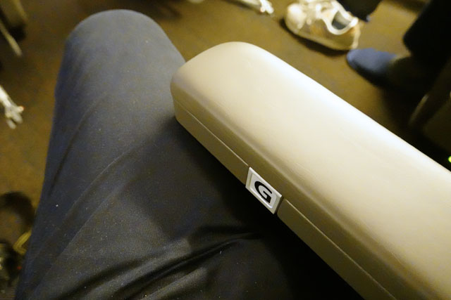 自席に座って足もとをみると、ビジネスバッグを置くのは難しそうだ。これは5月にモックアップを初めて見た際にも感じたことだが、電動リクライニングを採用したことで、足もとスペースにモーターなどが置かれたため、普通席のようなスペースは存在しない。