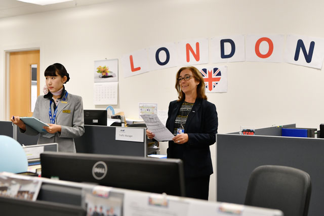 大野さんが研修でロンドンに赴任していた20年前は、「ジャンボで成田から2便、関空からも来てました。現在はロンドンを目的地にする方が多いですが、最初に入って欧州内を何カ国か回られたり、最後にロンドンで仕事を終えて帰国されるというように、私たちも欧州のネットワークが増えてきたので、だいぶ変わってきました」と、利用の仕方に変化が見られるという。