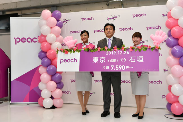 運賃は片道7590円から。運航スケジュールは、石垣行きMM533便が成田を午後2時40分に出発して、午後6時40分着。成田行きMM534便が午後5時45分に石垣を出発し、午後8時35分に到着する。機材はエアバスA320型機(1クラス180席)を使用する。