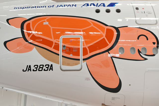 ・ANA、空飛ぶウミガメA380公開 ファーストクラスやペア席ビジネスも(19年4月23日)