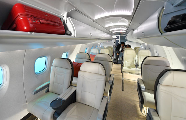 三菱航空機が16年のファンボロー航空ショーで展示したモックアップ=16年7月13日 PHOTO: Tadayuki YOSHIKAWA/Aviation Wire