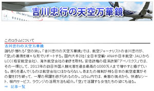 本日4月24日から日経BP社「日経ビジネスオンライン」で航空関連の連載コラム「吉川忠行の天空万華鏡」が始まりました。執筆は私が担当します。