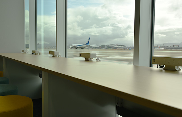 各種電源も備える30日にオープンする福岡空港のバスラウンジ=20年1月28日 PHOTO: Yusuke KOHASE/Aviation Wire