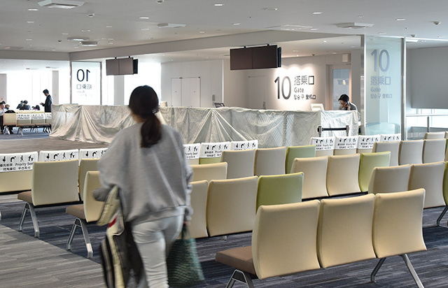 国内線の乗客が使用する施設は今回の開業でそろうが、今後はバスラウンジ棟2階と3階の商業施設や展望デッキの工事を進め、今夏をめどにオープンを予定している。
