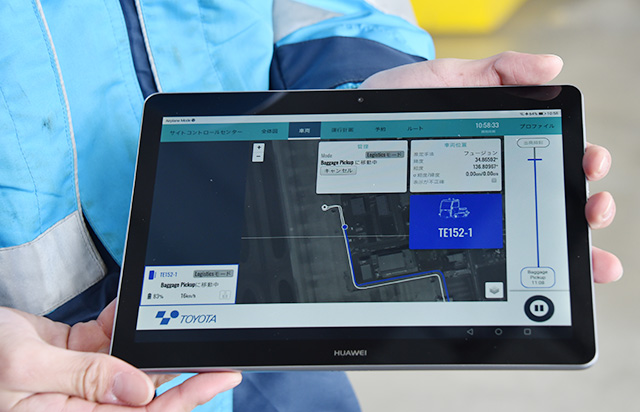 ANAの地上支援業務スタッフが使用する自動運転を操作するタブレット=20年2月12日 PHOTO: Yusuke KOHASE/Aviation Wire