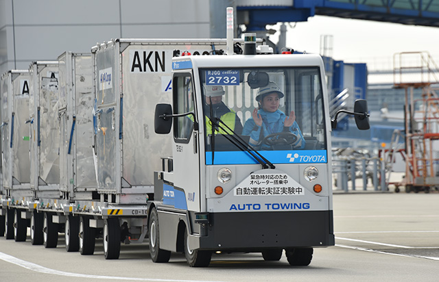 全日本空輸(ANA/NH)と豊田自動織機は2月12日、貨物コンテナなどをけん引する「トーイングトラクター」の自動走行試験を、中部空港(セントレア)で報道関係者に公開した。佐賀空港に続き2例目の自動走行試験で、2020年度での実用化を目指す。