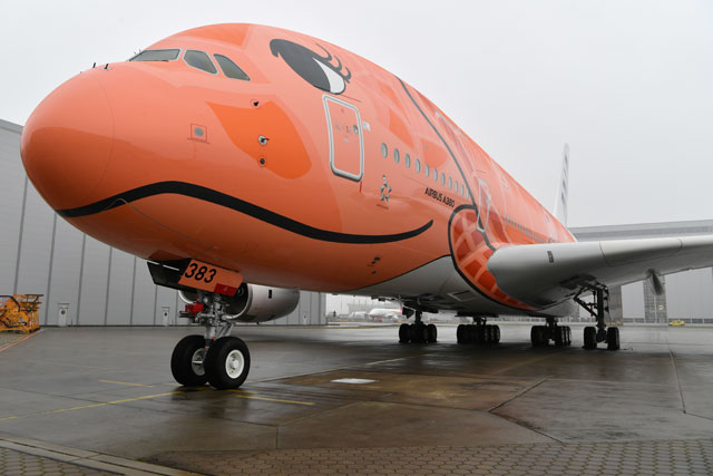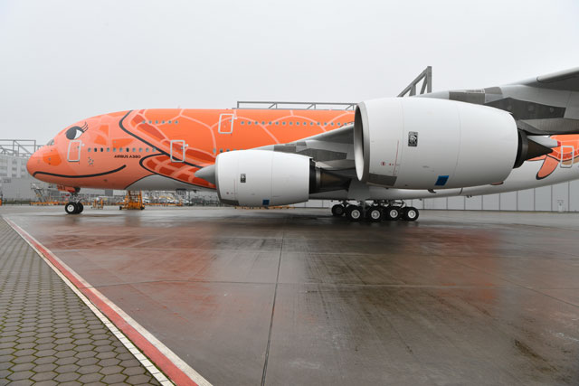 ・ANA、オレンジのA380お披露目 空飛ぶウミガメ3号機、ハンブルクでロールアウト(20年1月24日)