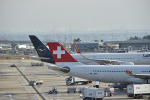 欧州・中東方面は28便が欠航。36便の計画で、78%にあたる便が欠航する。ハワイ路線は24便の計画に対し、33%にあたる8便が欠航する。