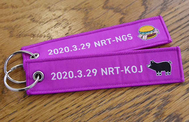成田発の鹿児島・長崎行きの利用客に配布した記念のフライトタグ=20年3月29日 PHOTO: Yusuke KOHASE/Aviation Wire