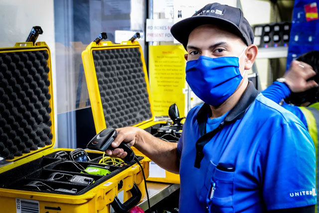 従業員の古い制服や作業服などをマスクにリサイクルするユナイテッド航空(同社ウェブサイトから)