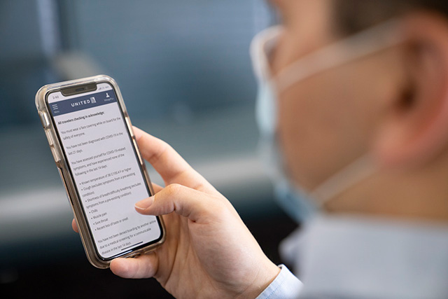 スマートフォンで「Ready-to-Fly」をチェックする乗客(ユナイテッド航空提供)