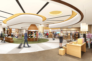 保安検査場通過後エリアに設ける商業エリアは、日本初導入となる「ウォークスルー型」を採用し、回遊性を高める。店舗は物販ゾーンと飲食ゾーンに分け、物販ゾーンを通過後に飲食ゾーンに入る。どちらも伊丹初出店の店舗をそろえることで、利用客の早めの保安検査場通過を促し、定時運航率の向上にもつなげる。