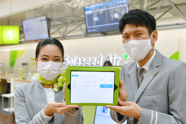 7月16日発表の運航計画では、ソラシドは8月1日から18日までは計画していた全便を運航する。新型コロナの感染が再び拡大したこともあり、飛行機の利用を控える動きがあるものの、今後利用者が増えた際には感染防止策は不可欠となるので、カウンター前の行列ゼロを目指して8月前の導入を実現させた。
