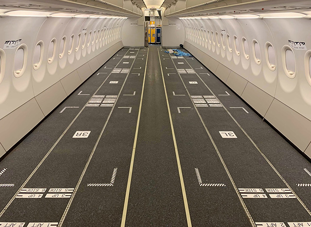 4日間かけて進めた改修では、座席を撤去し、消化器などを増設。週内には1機のA320を追加で改修する。運航はパイロット2人以上と客室乗務員2人が担う。