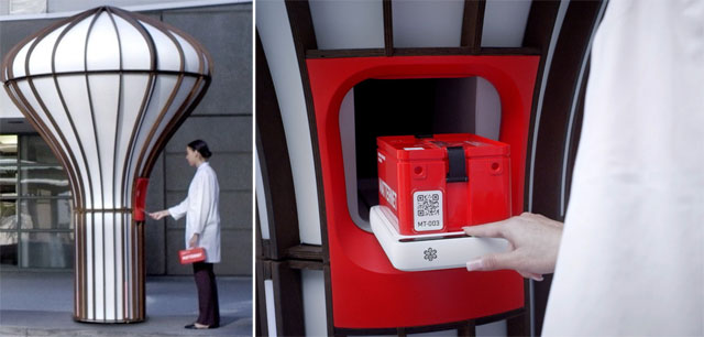 Matternet が開発中の「M2」が発着可能な荷物受け取り用のステーション(JAL提供)