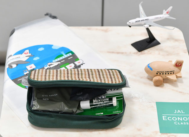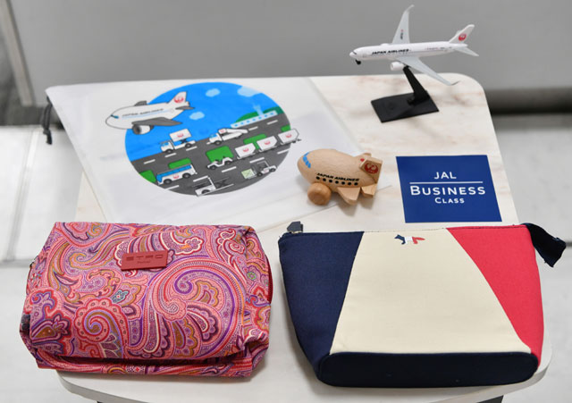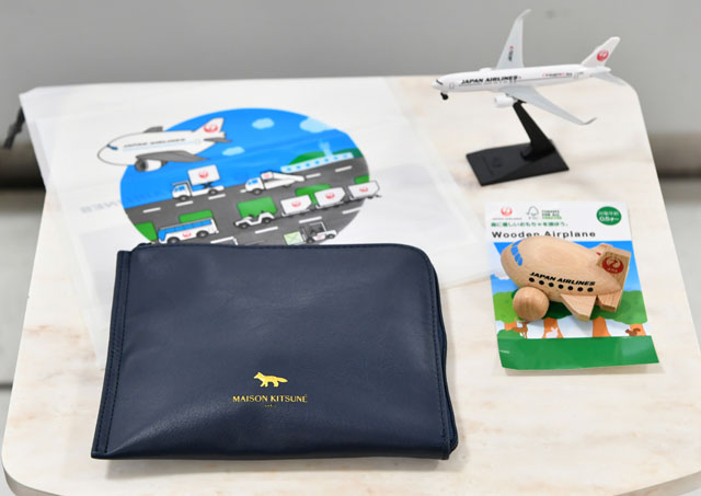 ビジネスクラスでは、今年3月から展開予定だったものの、新型コロナの影響で乗客にはまだ提供していない「MAISON KITSUNE(メゾン キツネ)」のアメニティーキットの新作を用意した。