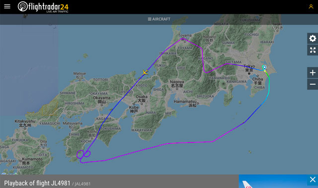 JAL星空フライトの飛行ルート(flightradar24.comから)