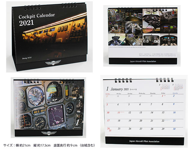 公益社団法人・日本航空機操縦士協会(JAPA)は、2021年の卓上カレンダーを販売している。大型旅客機から小型機、ヘリコプターまで、さまざまな航空機のコックピットの写真を掲載している。