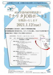 成田空港を運営する成田国際空港会社(NAA)は12月24日、空港関連企業や従業員向けの雇用相談窓口「ナリタJOBポート」を2021年1月12日に空港内に開設すると発表した。新型コロナウイルス感染症(COVID-19)の影響で、国際線を中心に大量運休や減便が長期化する中、厚生労働省千葉労働局などの協力を受け、職業相談や出向・移籍支援などの相談を受け付ける。NAAによると、国内空港では初の施設になるという。
