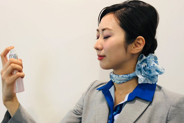 製品名は「ANA×エムフォー ブライトスカイシリーズ」で、保湿美容液ミストの「エムフォー ブライトスカイシャワー」とスティックタイプの「エムフォー ブライトビュースティック」。客室乗務員が