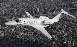 毎日新聞と共同通信が共同運航するセスナ525AサイテーションCJ2+(毎日新聞のサイトから)
