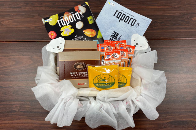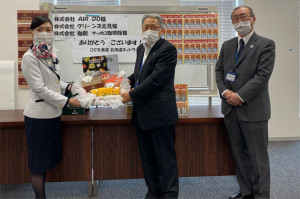 寄贈した商品は、福袋にちなんで選んだ「エア・ドゥ オリジナルエコバッグ」が2500個、北見地方産タマネギの風味を楽しめる定番メニュー「オニオンスープ 3本パック」が2500パック、自家製ローストのコーヒー豆を使用したチョコレート「カフェラテショコラ」が650枚、「メロンキャラメル」が500箱となる。