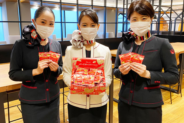 JALは2018年からバレンタインデーにチョコを機内で配っており、今年で4回目。新型コロナウイルス感染症(COVID-19)対策として、客室乗務員がマスクや手袋を着用するなどの感染予防策を講じて行うという。
