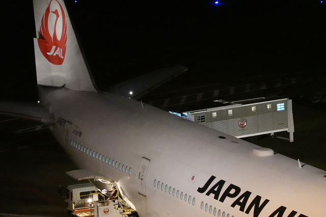 那覇で修理を終えたJA8978は、2月16日午後4時52分に那覇をJL4692便として出発。羽田には午後7時2分に到着した。乗客を乗せない貨物専用便として運航し、羽田に着くと貨物コンテナなどが機体から降ろされ、機体後方左側ドアにも地上支援車両が付けられていた。また、機体やエンジンを整備士たちが点検していた。
