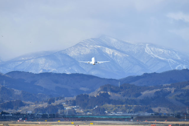 仙台空港を出発する羽田行きJL4720便=21年2月19日 PHOTO: Tadayuki YOSHIKAWA/Aviation Wire