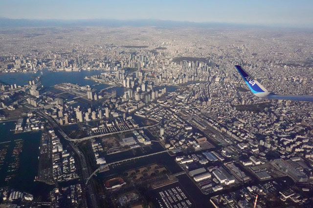 羽田空港を離陸した仙台行きNH1501便から見た都心=21年2月19日 PHOTO: Tadayuki YOSHIKAWA/Aviation Wire