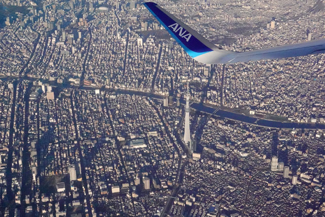 羽田空港を離陸した仙台行きNH1501便から見た東京スカイツリー=21年2月19日 PHOTO: Tadayuki YOSHIKAWA/Aviation Wire