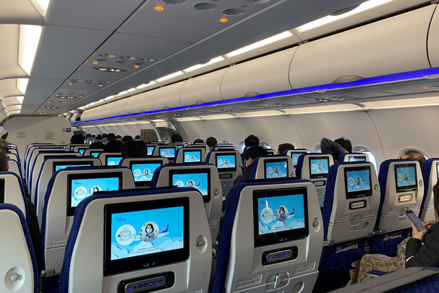羽田発仙台行きNH1501便の機内=21年2月19日 PHOTO: Tadayuki YOSHIKAWA/Aviation Wire