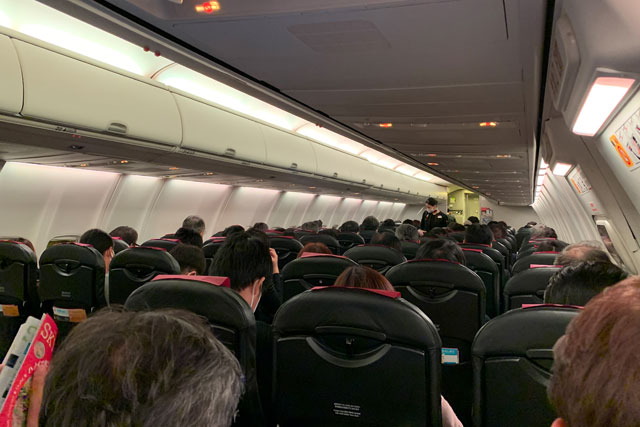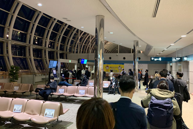 一方、午後6時発の羽田行きJL4920便はボーイング737-800型機(2クラス165席)がほぼ満席。ひさびさにパンパンになった機内を体験した。羽田には7時ごろ着くので、多くの人が9時ごろまでには目的地に着ける時間設定だと言えそうだ。