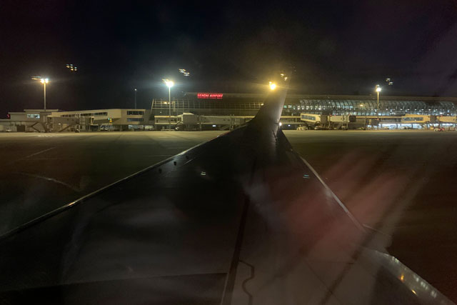 午後6時すぎの仙台はすでに暗く、出発した機内からは「SENDAI AIRPORT」の赤い文字が見えた。
