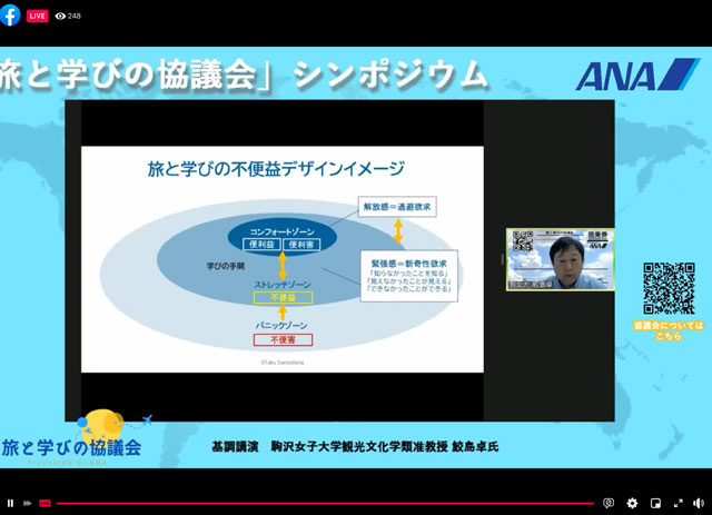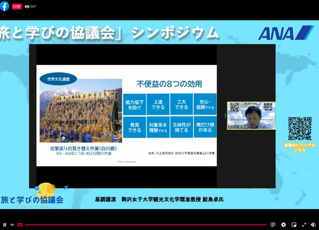 旅と学びの協議会が開いたオンラインシンポジウムで基調講演する駒沢女子大の鮫島准教授