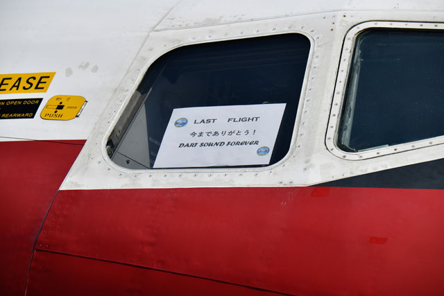 ラストフライトで施されたYS-11FCの飾り付け=21年3月17日 PHOTO: Tadayuki YOSHIKAWA/Aviation Wire