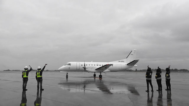 鹿児島空港を出発する日本エアコミューター最後のサーブ340B(同社提供)