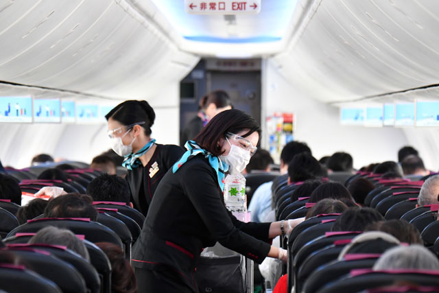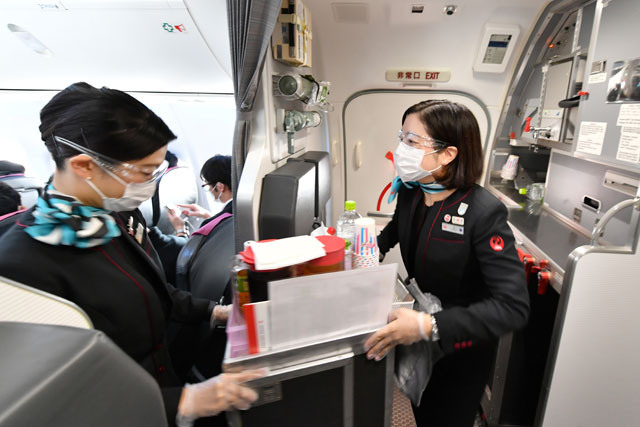 JTAの中部発宮古行き初便NU135便でドリンクサービスする客室乗務員=21年3月28日 PHOTO: Tadayuki YOSHIKAWA/Aviation Wire