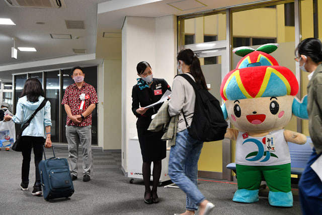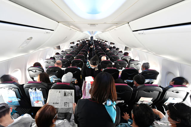 宮古空港から中部空港へ向かうJTA便のNU138便の乗客=21年3月28日 PHOTO: Tadayuki YOSHIKAWA/Aviation Wire