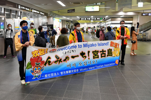 JTAの青木紀将社長は就航式典で「12年ぶりの新路線。沖縄の中で海が一番澄んでいる場所。泡盛もおいしく、お酒の飲み方だけ気をつけていただければ安全な街だと思う。機内に入った瞬間から沖縄を感じていただける最高のおもてなしで出迎えたい」とあいさつした。