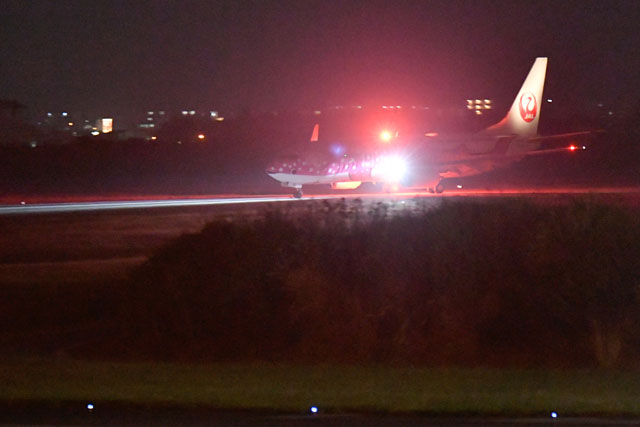 宮古発初便のNU138便は、午後7時16分に同じ機材で出発したが、エンジン関係の計器に不具合が生じたため鹿児島県屋久島の手前で引き返し、那覇空港へ到着地を変更。午後9時23分に到着し、機材を別の737-800(JA07RK)に変更後、那覇を午後10時31分に出発して中部には約3時間遅れとなる29日午前0時22分に到着した。