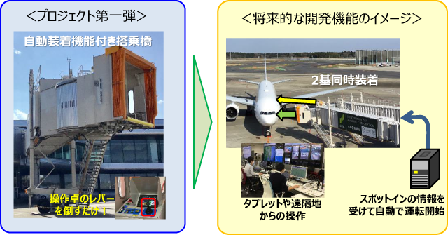 成田空港で進む搭乗橋の完全自動運転化プロジェクト(NAAの資料から)