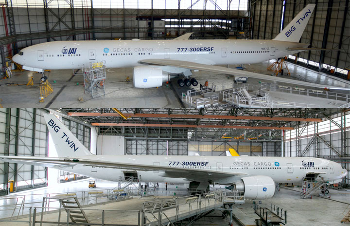 GECASとIAIが進めている777-300ERの貨物機改修777-300ERSFのプロトタイプ(GECAS提供)