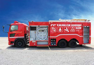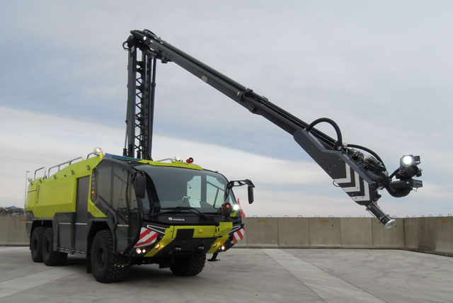 HRETを装備した化学消防車は、放水銃を運転室前方や高い位置、低い位置に伸展できる。高さを自在に変えられるだけではなく、機体を貫通させて消火する「穿孔(せんこう)ノズル」を使うことで、消防隊員を機内に突入させなくても、航空機で起きた火災の鎮圧が容易になる。放水銃の先端には熱画像カメラも備え、車内のモニターで確認しながら消火できる。