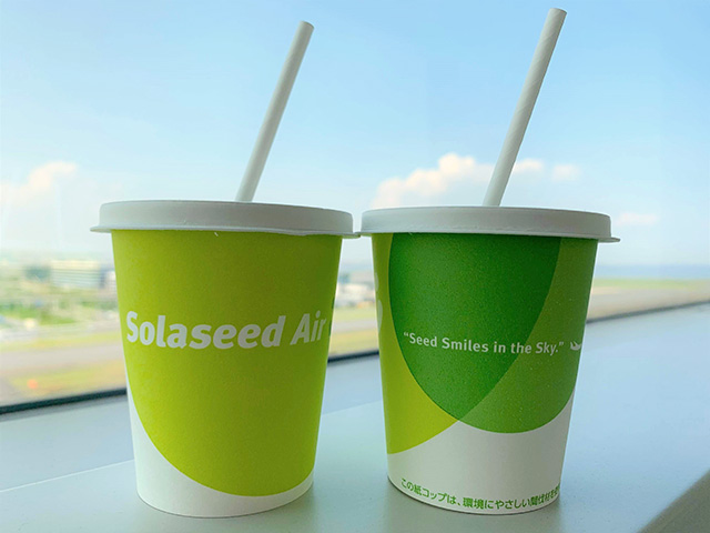ソラシドエア(SNJ/6J)は8月31日、機内で使用する紙コップについて、プラスチックコーティングされたものから間伐材を使用した素材に変更すると発表した。環境保全への取り組みの一環で9月1日から全14路線で導入する。このほか、紙コップ用のフタとストローも紙素材に切り替える。
