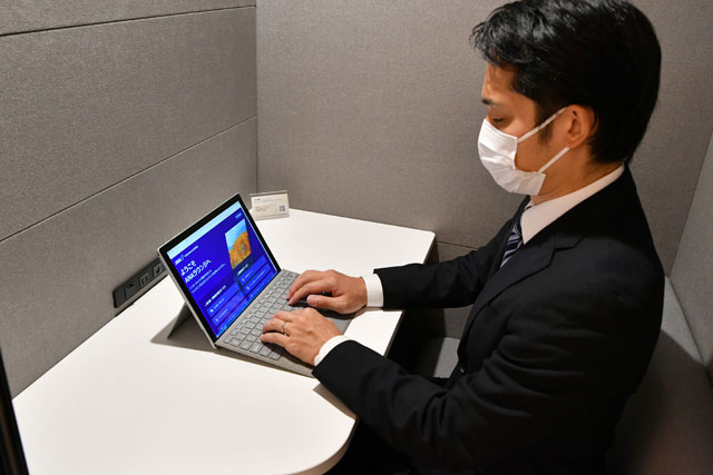 ANAによると、スイートラウンジは既存の電話ブースの構造上Web会議などが難しく、周囲の音や視線を気にせずに利用できる個室のスペースを求める声があったことから、トライアルを決めたという。期間は3カ月間で、利用者からオンラインでアンケートを取り、ラウンジ係員からもヒアリングして実用化に向けた検討を進める。
