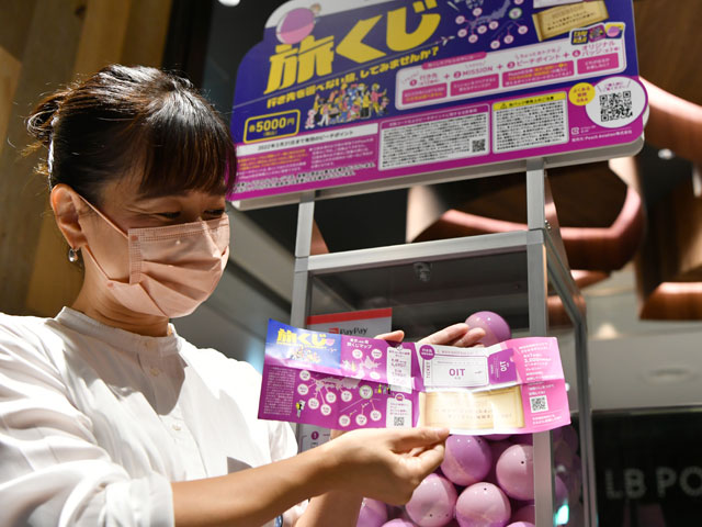ピーチは旅くじの販売を8月から大阪・心斎橋PARCO内で開始。行き先は関西空港発着の国内13路線が対象で、2カ月間で3000個以上を販売した。首都圏での展開は今回が初めてで、「ガチャガチャ」などの愛称で親しまれるカプセルに、社員が手作業で交換コードなどを詰めている。