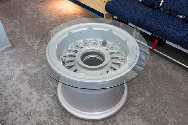 中部国際空港セントレアホテルのANA ROOMに設置された777のホイールを生かしたテーブル(同ホテルのサイトから)