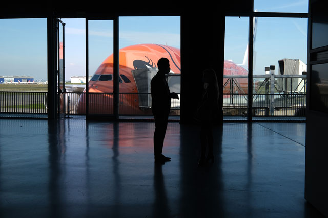 トゥールーズを出発するANAのA380 3号機を見送るエアバスのスタッフら=21年10月15日 PHOTO: Yuriko NAKAO/Aviation Wire