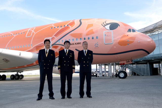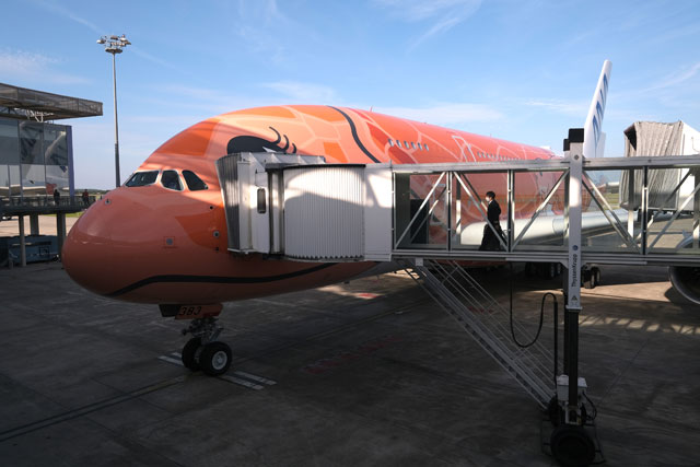 ・ANAのA380、オレンジ3号機就航 日本到着から2年、3機出そろう(23年10月20日)
